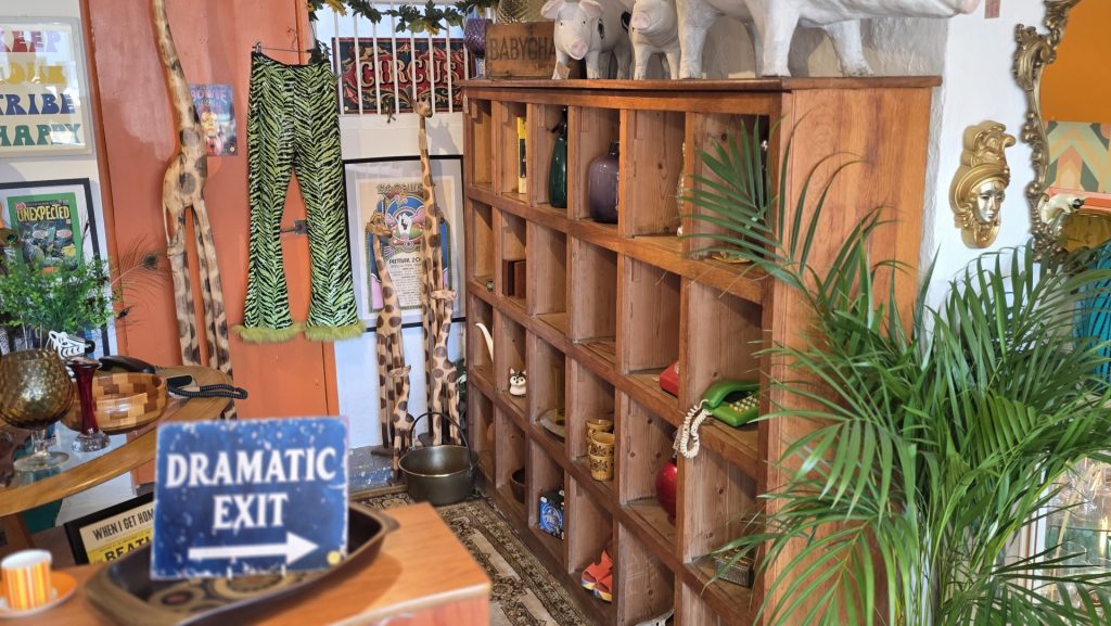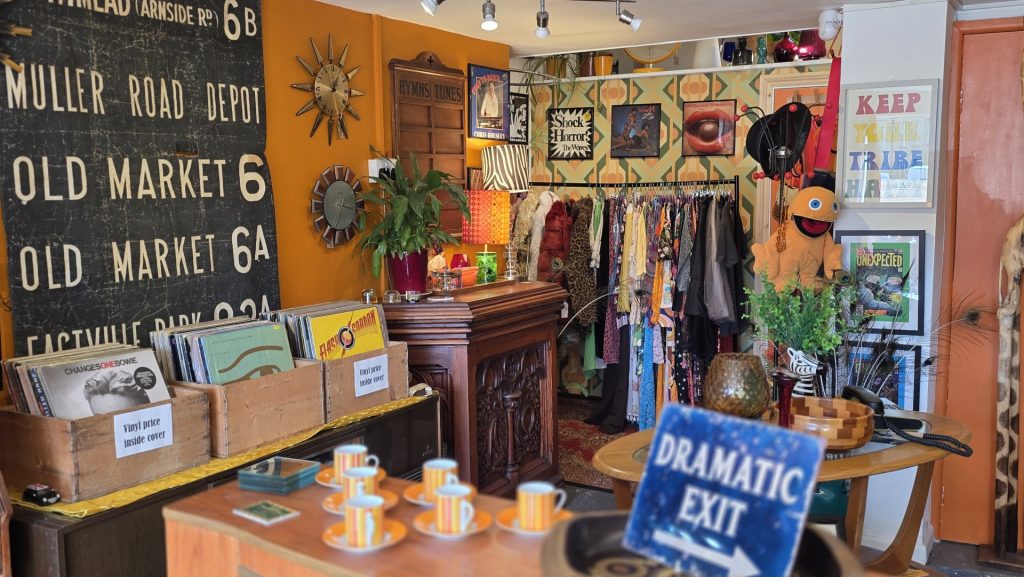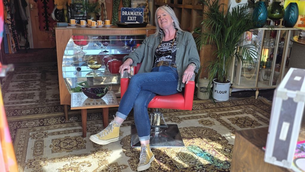 The Wells Trading Post is a blend of festival and vintage fashion, records, furniture and a colourful mix of delights, including vases, lamps, posters, retro telephones, and so much more – ‘quirky products’, in Tanith’s own words. All curated and displayed with Tanith’s very experienced eye. She said: “It’s just in my blood to get up at five in the morning and go rooting around in a car boot sale. I really love buying, and I really love selling.”